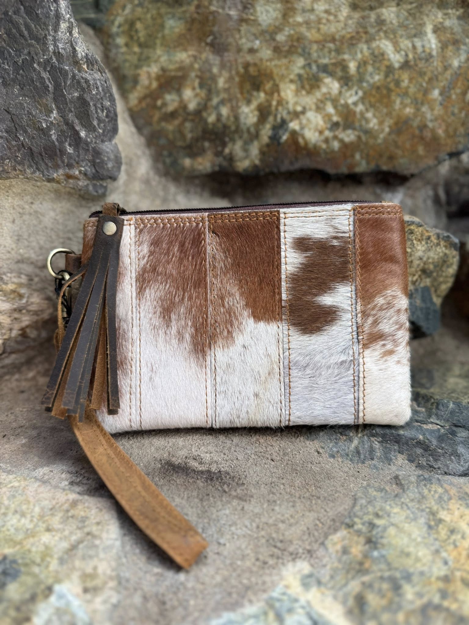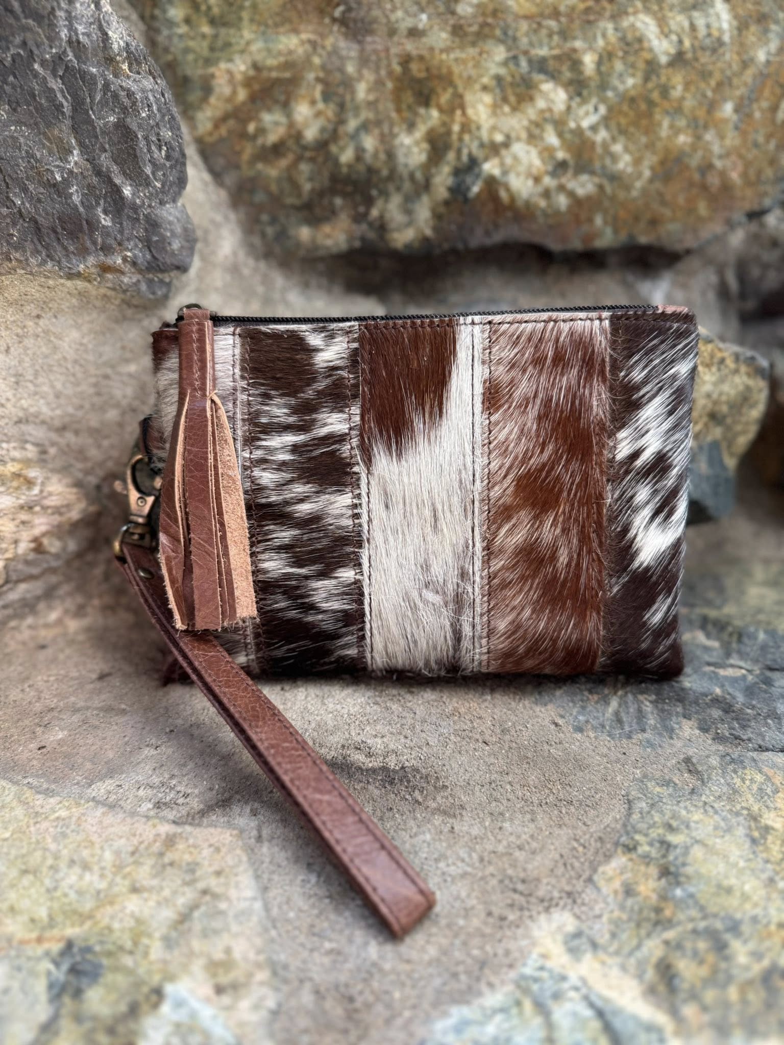Cowhide Leather Satchel Clutch with Wrist Strap